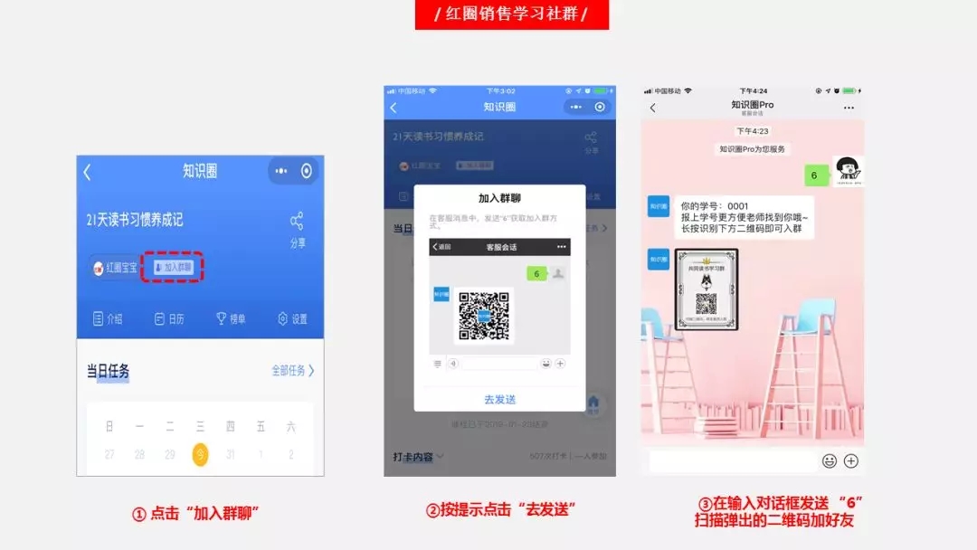 报名结束后,请按照如下步骤添加红圈二宝好友进活动群: