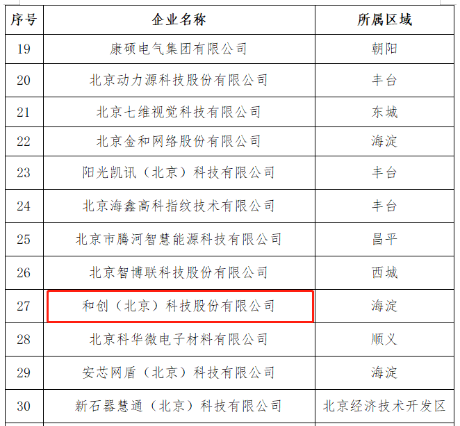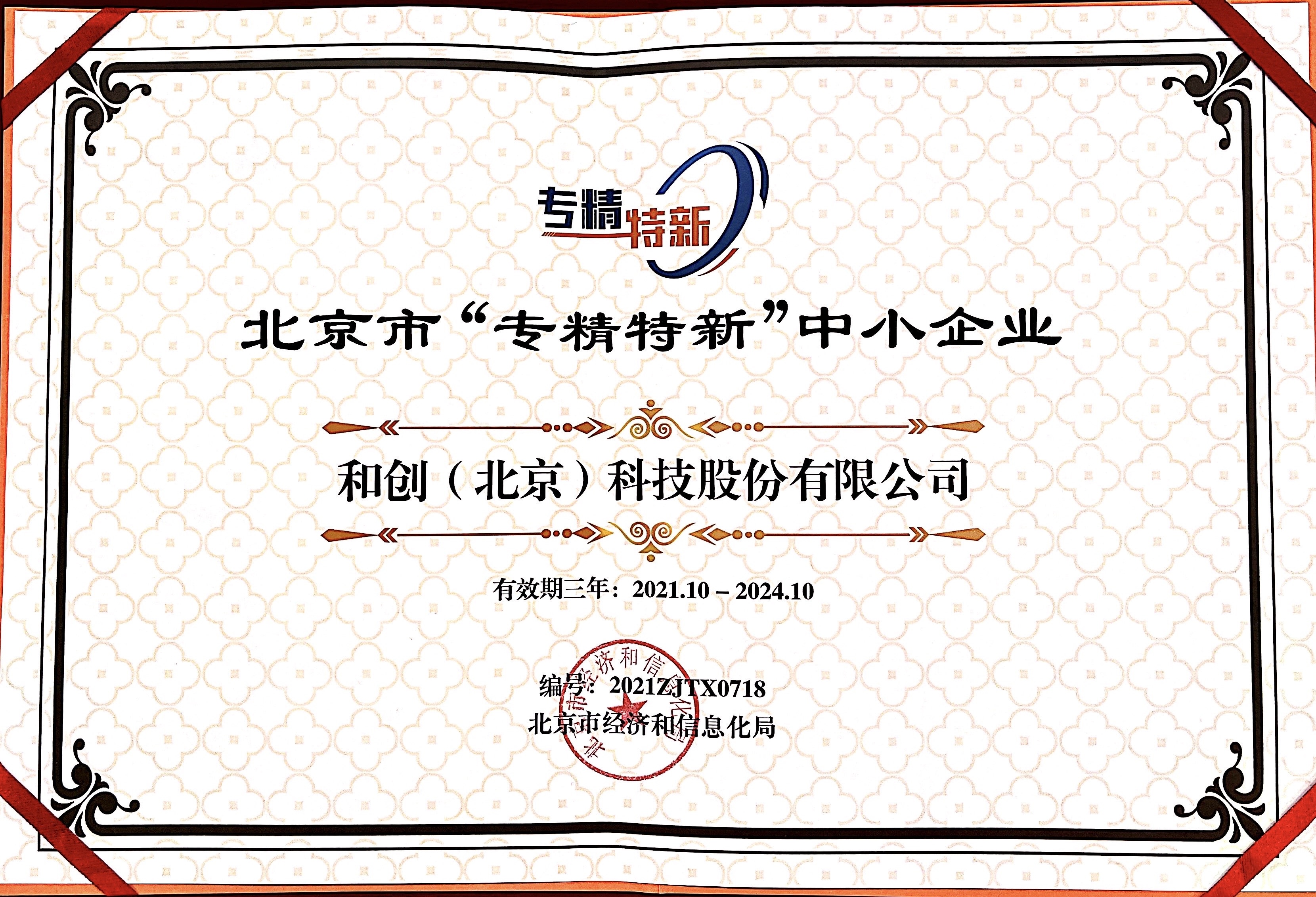2021 年 10 月 29 日,北京市经济和信息化局将北京市 2021 年度第六批拟认定“专精特新”中小企业名单予以公示,和创(北京)科技股份有限公司荣登榜单,此次公示期为 10 月 29 日至 11 月 4 日,目前已通过公示期。 根据北京市经济和信息化局的评审程序的有关规定,对于公示期无异议的,认定为“北京市‘专精特新’中小企业”。