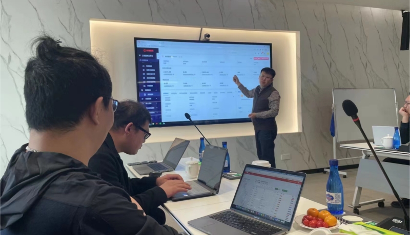 拜访现场,红圈CEO刘总、产品经理王总对建筑行业标准系统功能及首页经营数据看板进行了介绍,展示出了和创科技(红圈)的核心竞争力。