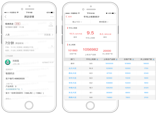 值得一提的是,销售代表提交的实时数据,红圈通都能自动生成相应的数据报表,帮助贵州百灵及时了解市场动态,做出科学决策。例如,在红圈通自动生成的客户、产品、业务和员工行为等数据报表中,贵州百灵可以结合员工的拜访数据、产品的上柜数据以及订单金额等,对拜访上柜质量进行分析,从而有针对性地优化市场策略,推动销量提升。