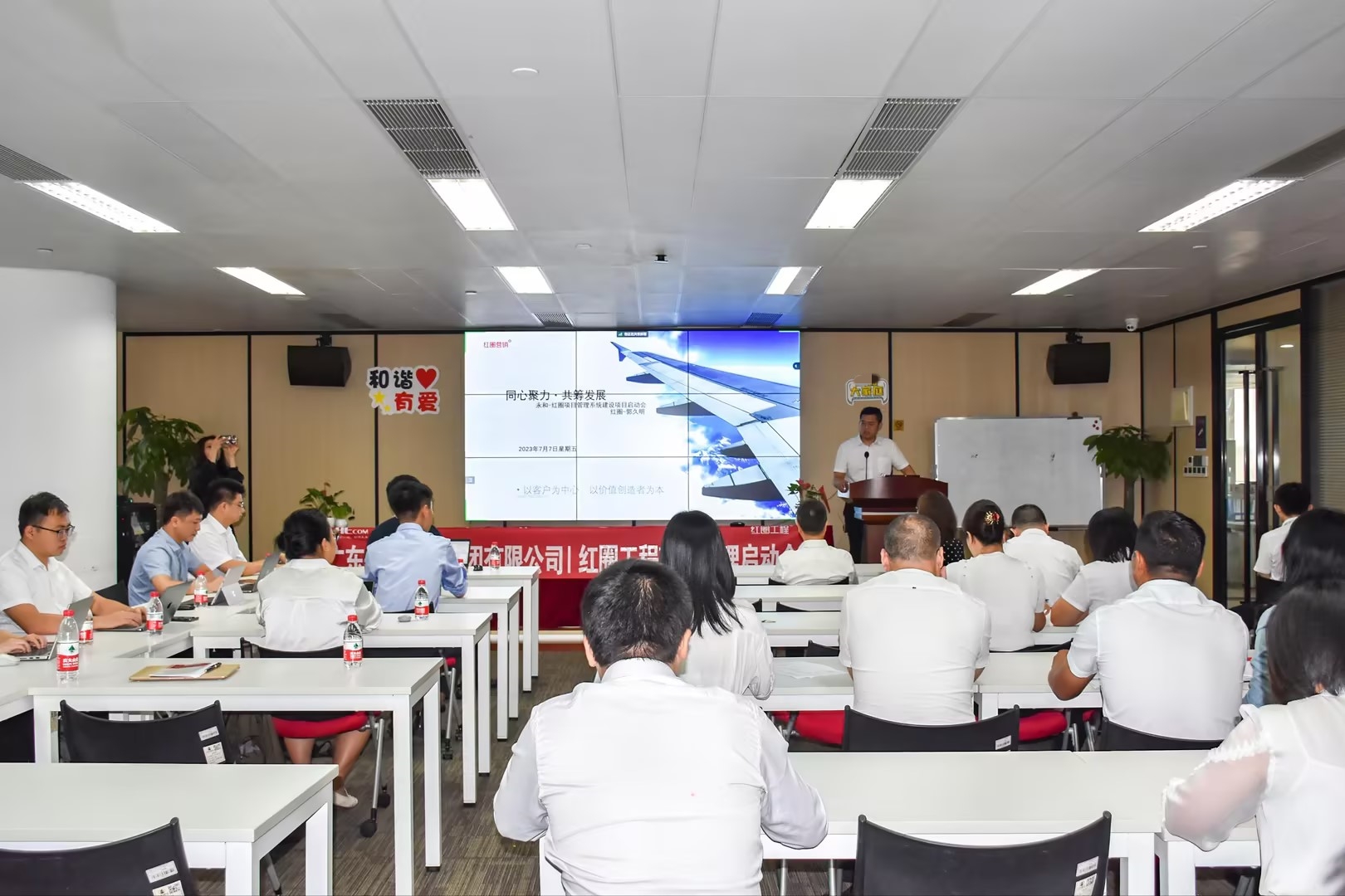 启动会最后,集团总裁何总强调:在红圈系统建设过程中,每个部门与红圈项目组团队必须紧密配合,达成业务应用系统的融合;要按照项目组管理要求组织月度例会、周例会,将计划落实,确保每项问题能够及时得到分析和处理,保障红圈系统快速落地。