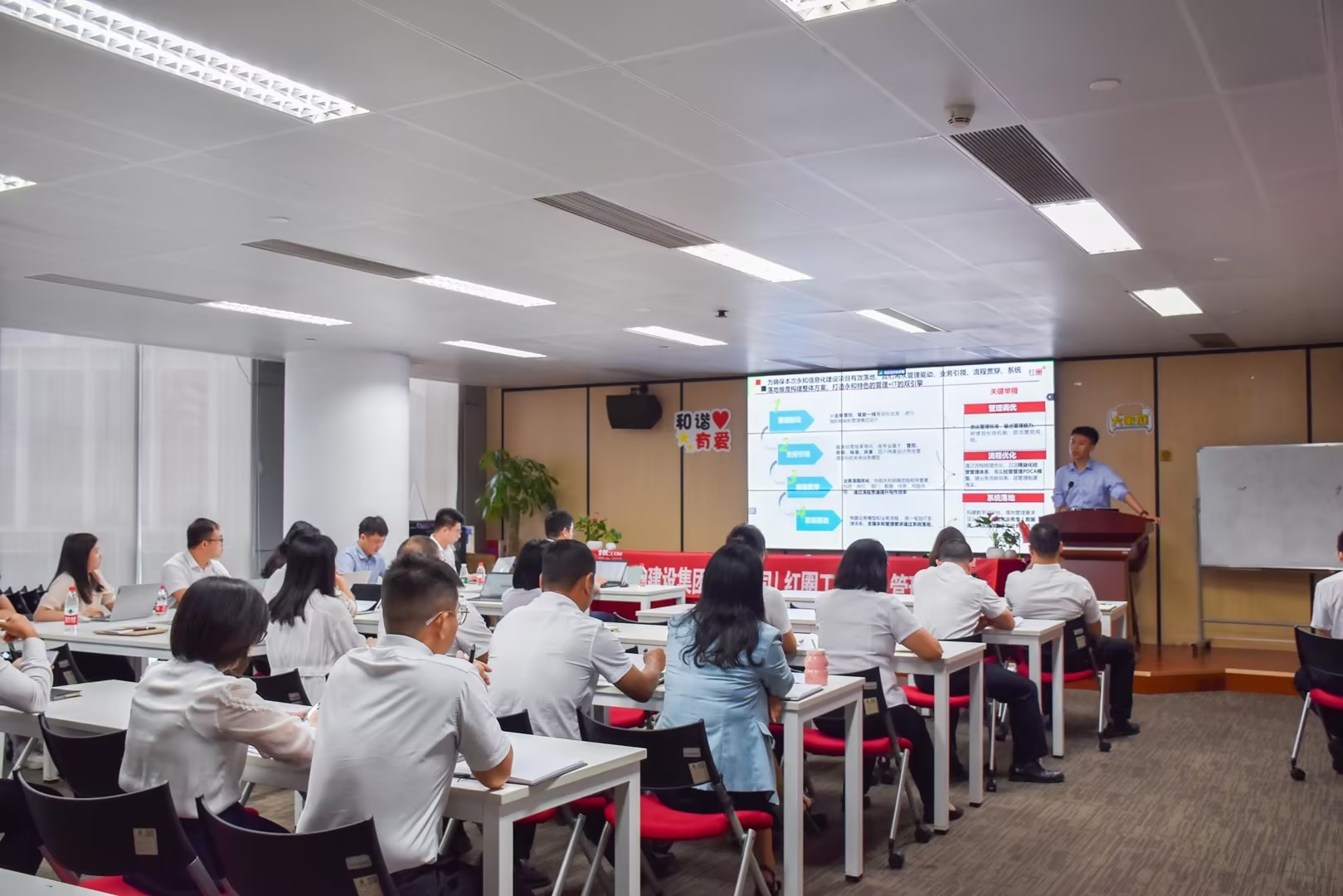 客户方:集团副董事长兼总裁何明理、副总裁李钢粮、副总裁李海燕、总裁办主任兼审计监察室主任任帅,人力行政中心总监王心洁、成本管理中心总监张弘等管理人员;红圈团队:区域实施总监刘思龙、实施经理郭久明、黄强、骆佳言、李一飞、销售经理吴泽栋、简汉钦、运营经理刁倩、廖宇。为进一步深化集团公司对项目的有效管控,集团将成立“红圈系统实施项目工作小组”,以新开工的项目作为红圈系统试点应用单位,打磨一套适合公司的智能化项目管理平台,为实现集团对项目的“数字化管控”提供支撑。