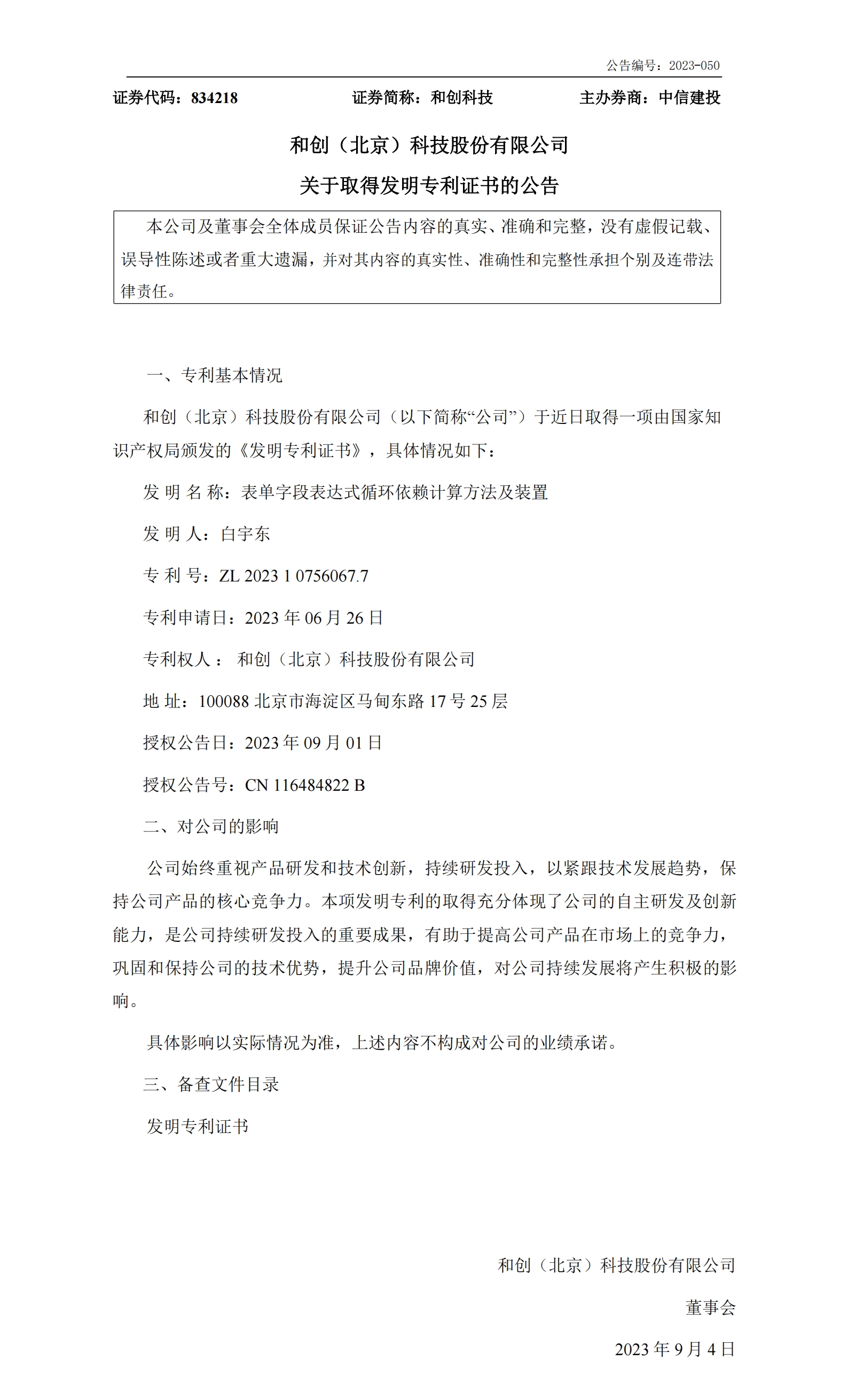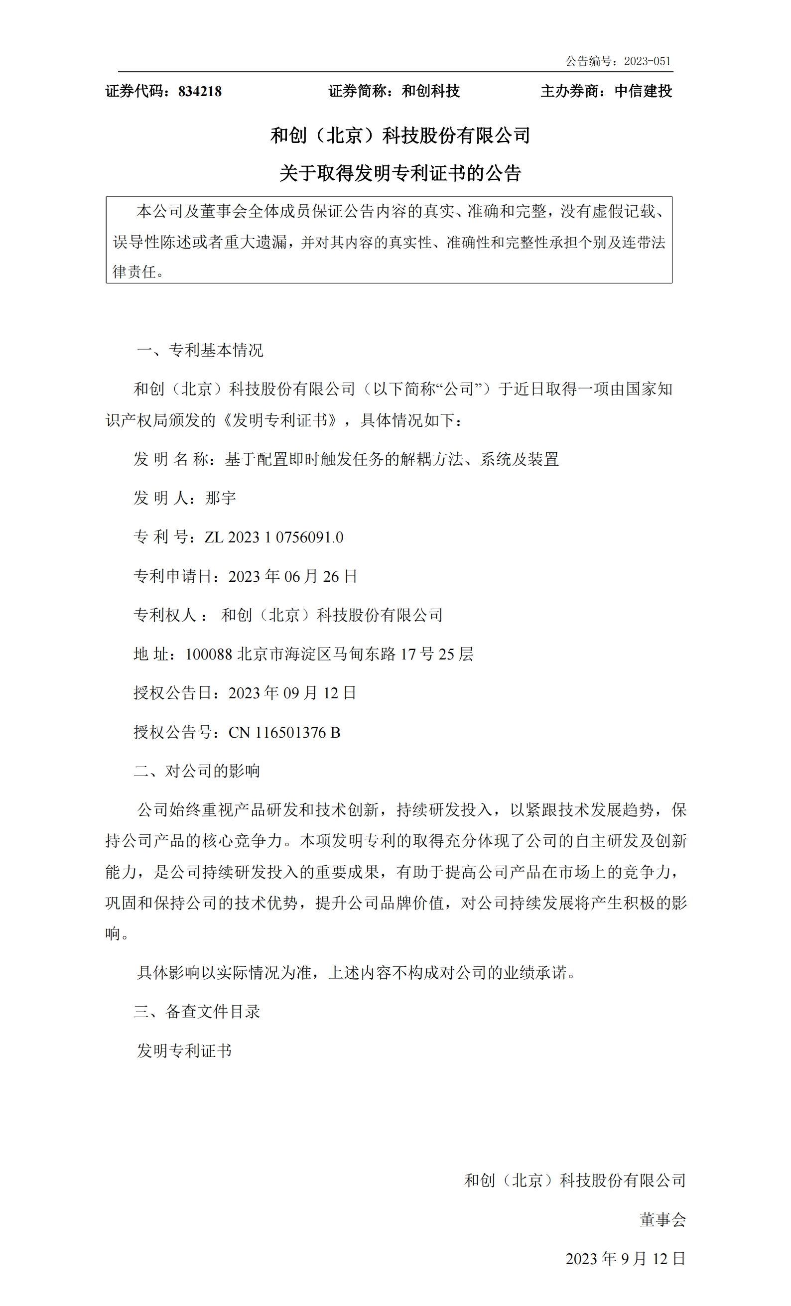 红圈新闻 | 喜报!和创科技近日连续取得两项最新发明专利!