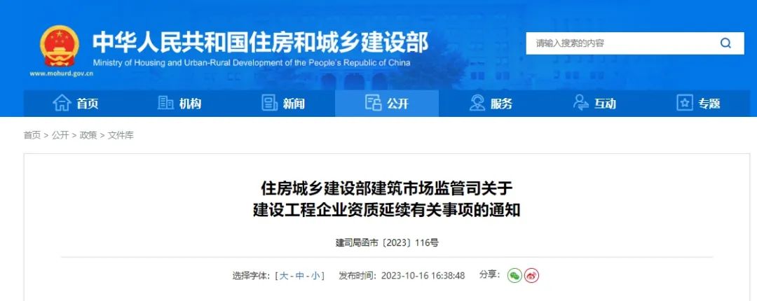 10月16日,住房城乡建设部建筑市场监管司发布关于建设工程企业资质延续有关事项的通知: