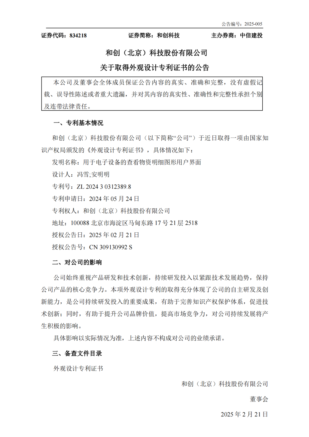 红圈新闻 | 创新交互,智领未来:和创科技荣获一项最新外观设计专利