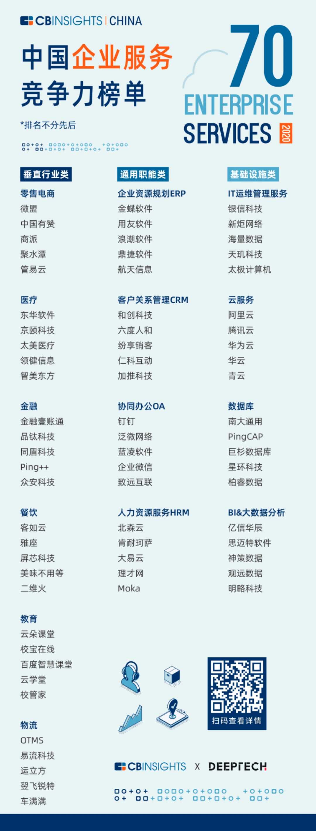 红圈等70家中国公司上榜!CB Insights首次发布中国企业服务竞争力榜单