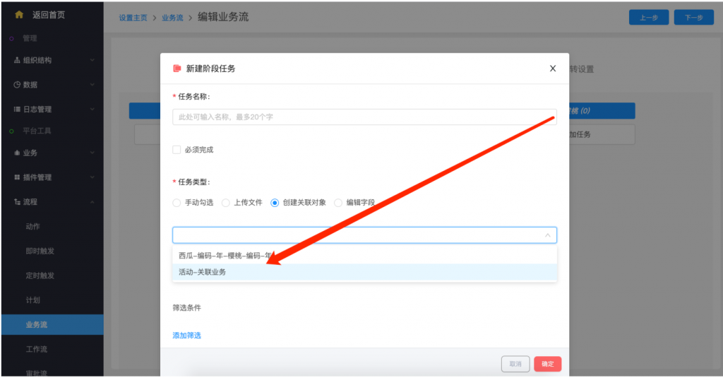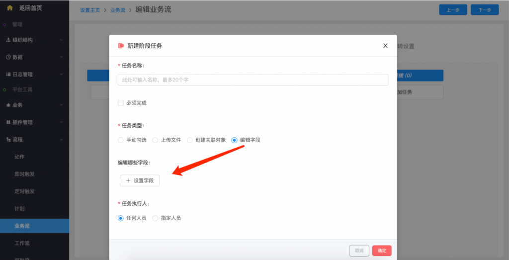 - 业务流添加阶段任务,新增“编辑字段”类型任务,所有设置的字段均为必填