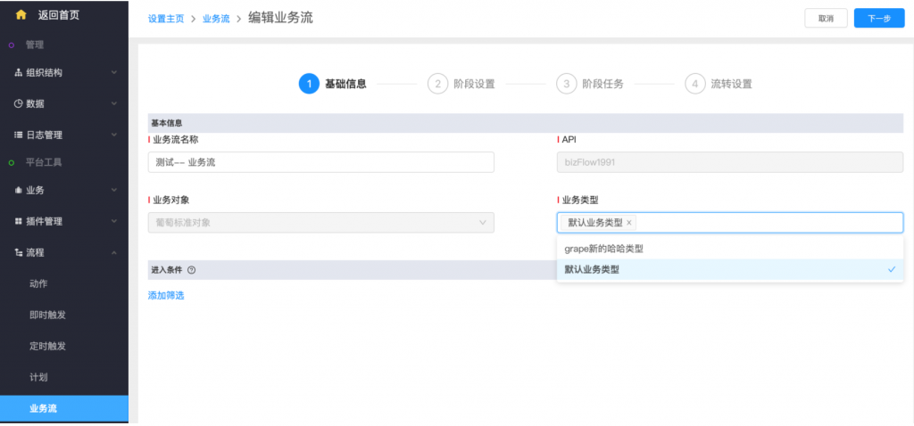 - 后台编辑业务流配置时,支持编辑业务类型;