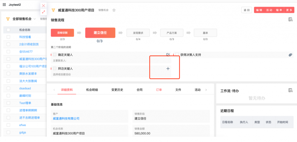 - 支持插入预设的报表:销售漏斗分析,销售理单阶梯图,线索转化统计和目标完成统计