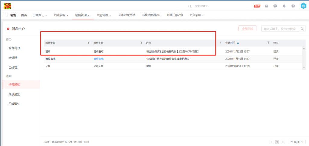 6. 手动转移数据给新负责人时,系统自动给负责人发消息通知