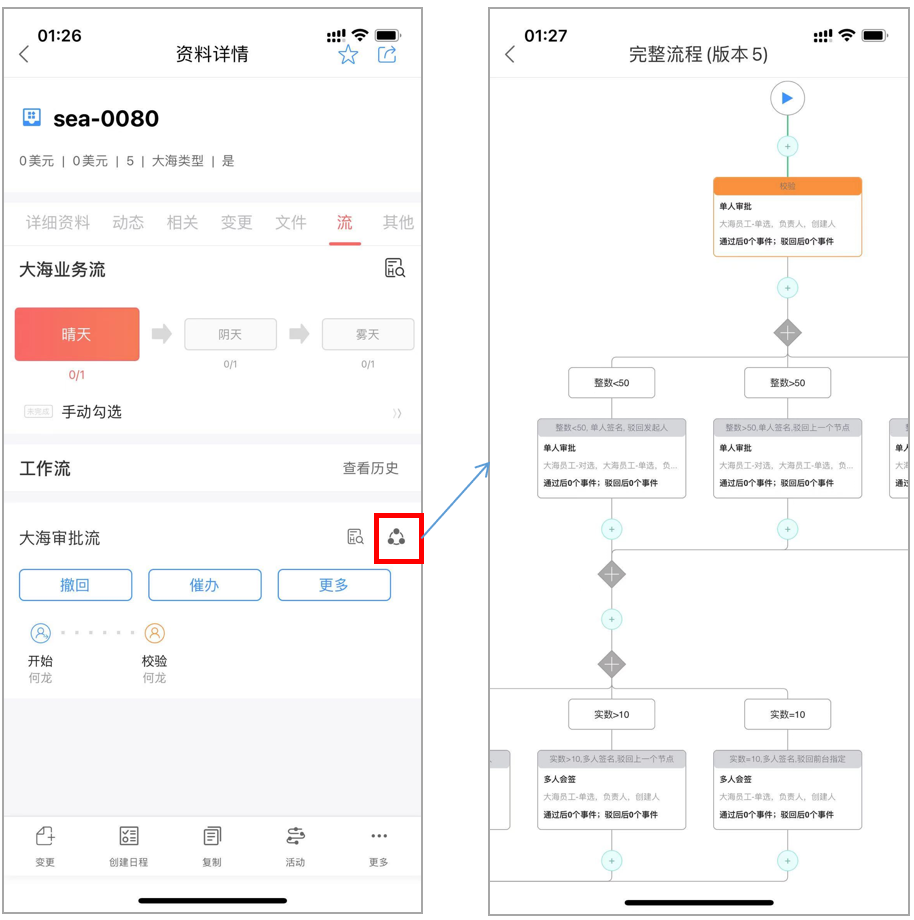 移动端审批流组件中,可以查看全流程,与网页端一致