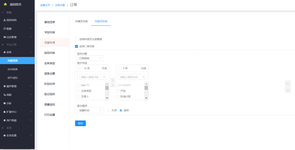 1)对象列表页可向下展示二级列表,可以列表页展示下游相关对象