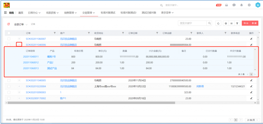 可以在合同列表查看合同的回款情况;可以在订单列表查看订单销售的产品情况