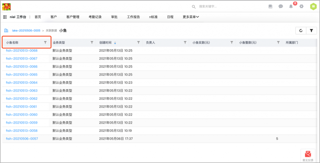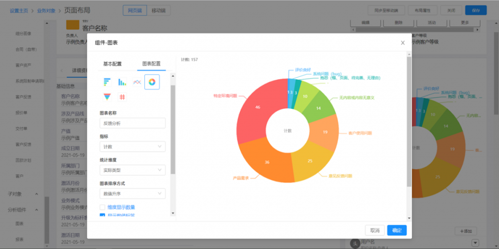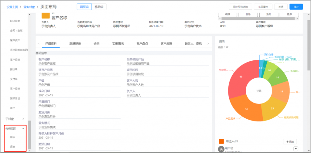 在数据资料的详情页面上,可以查看相关对象的报表。实现以当前数据为中心,360度视图轻松查看分析全貌