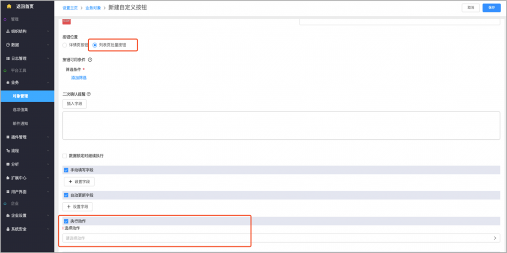 - 批量执行后返回结果:批量按钮(如批量分配/批量删除/自定义按钮)的筛选条件不影响按钮是否显示,而是批量执行后返回结果