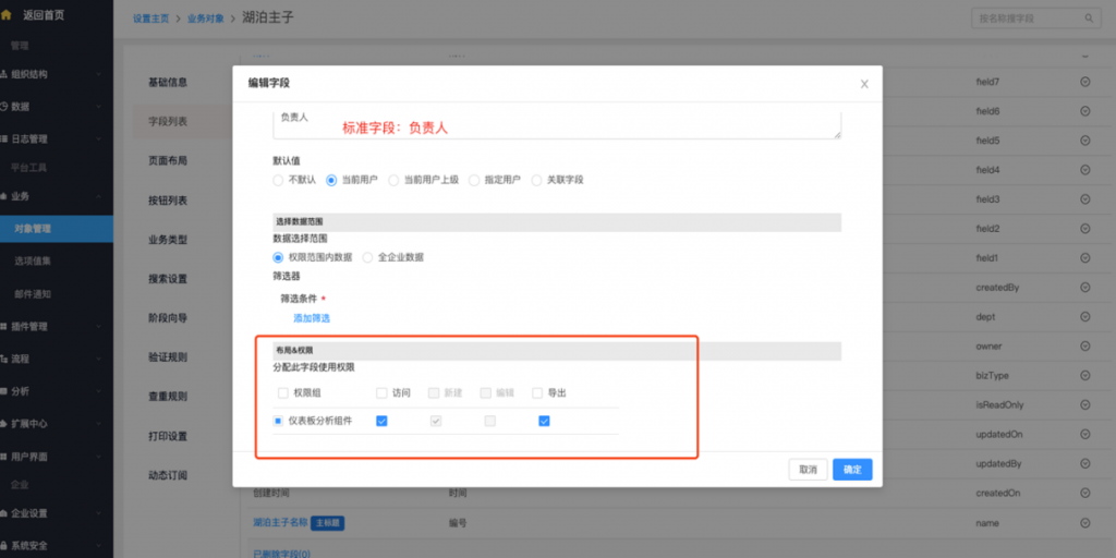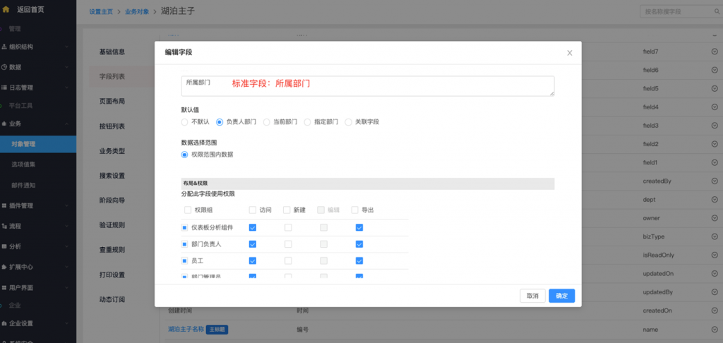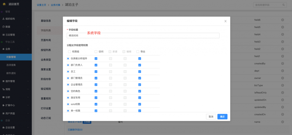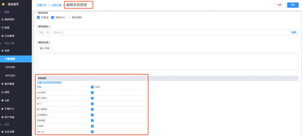 - 系统字段及按钮修改权限配置:系统字段、标准字段(所属部门及负责人)、按钮支持在编辑时修改权限