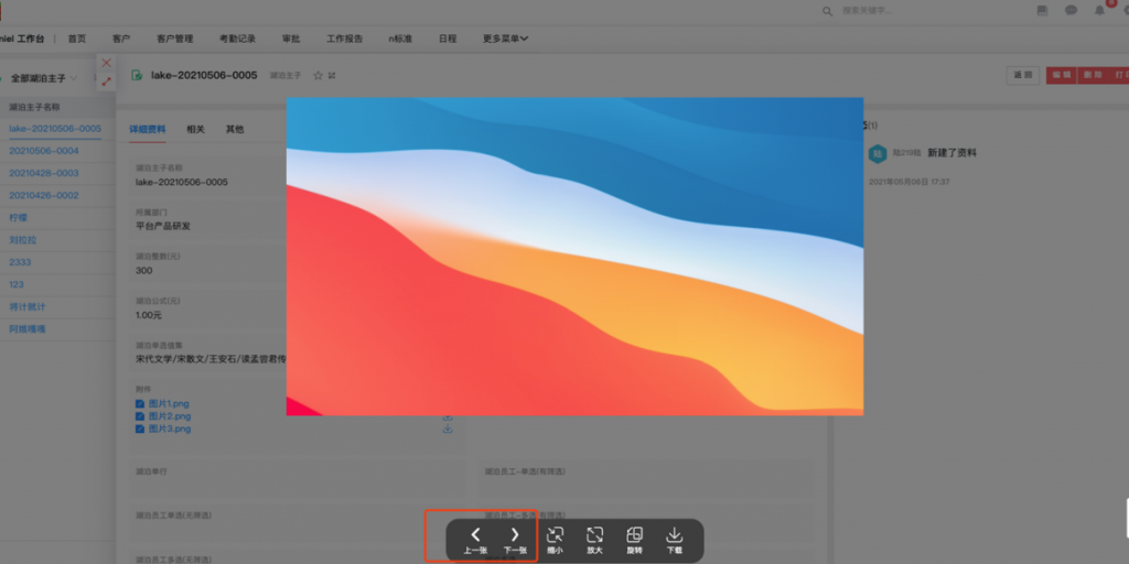 - 附件字段中的图片预览时可上下切换:附件字段中详情页的图片在预览时可以上下切换