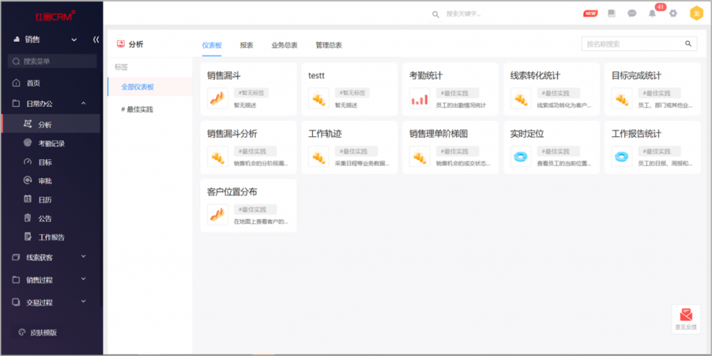 仪表板可创建独立菜单项:某一个仪表板可以配置菜单项入口,实现在前台使用时的快速访问