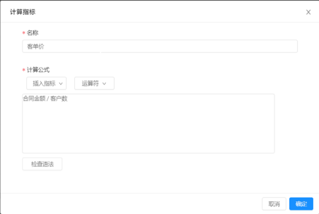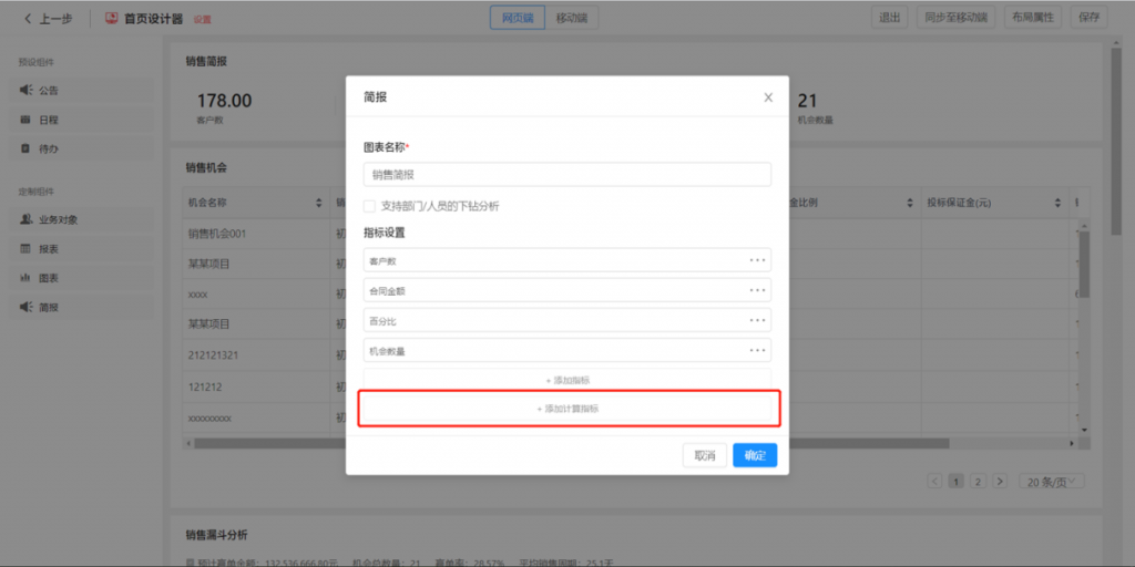 计算指标:首页简报组件,可支持指标间进行基础四则运算,生成计算指标