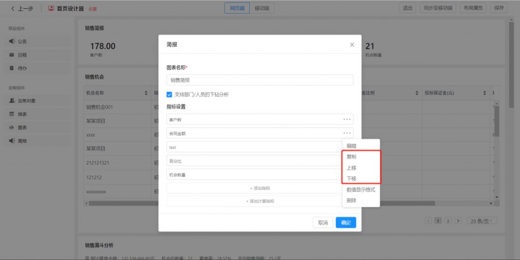 指标排序、复制:组件内指标支持排序和复制