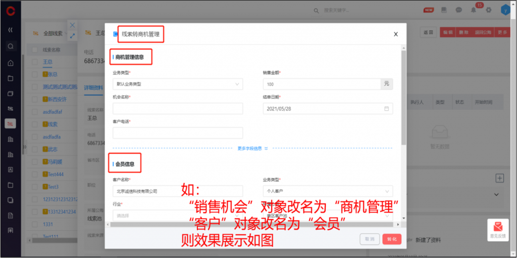 线索转化页面对象名称变化