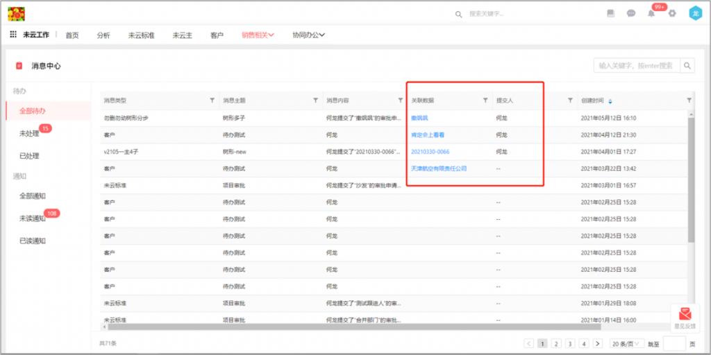 web端待办显示提交人和关联数据标题:web端消息中心,待办消息中增加提交人和关联数据的信息显示