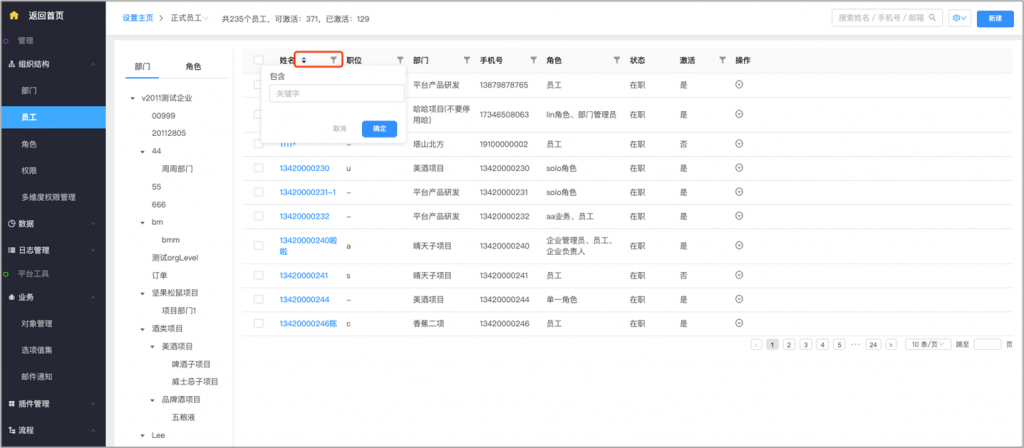 后台员工列表支持筛选排序:后台员工列表支持筛选及排序