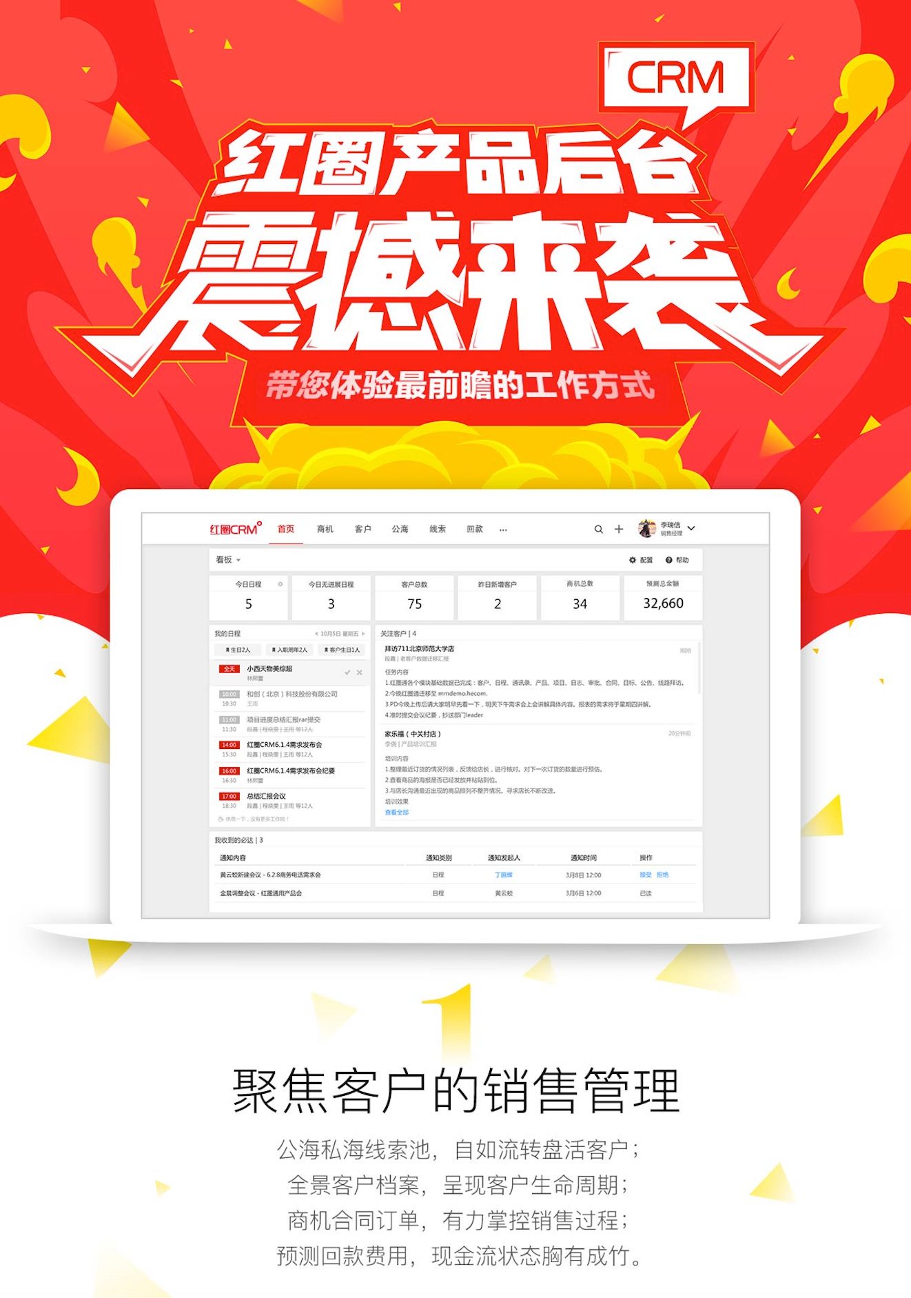 即刻登录,尽享以客户为中心的高效业务系统,红圈CRM 产品后台,现更以“新”呈现!