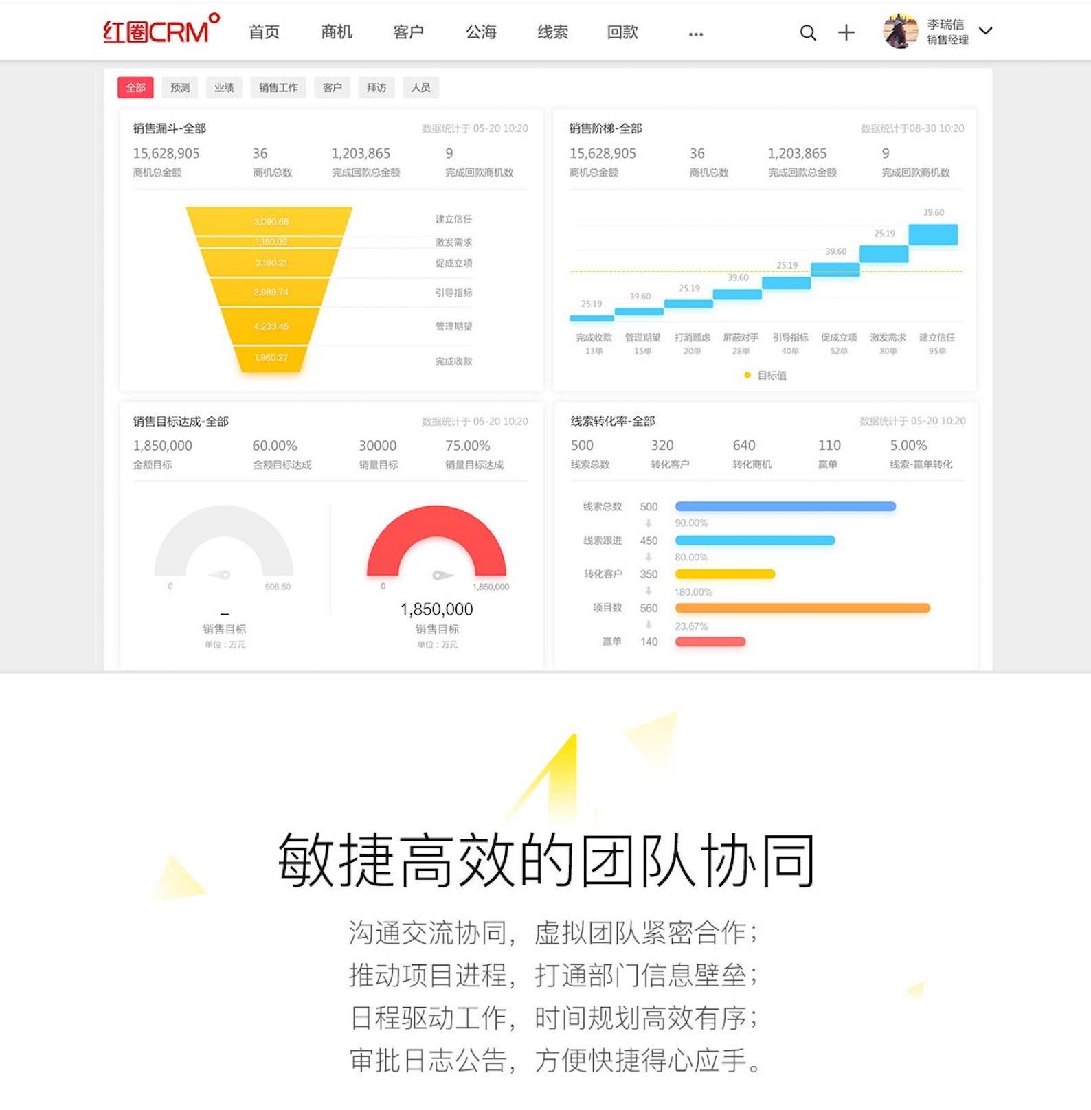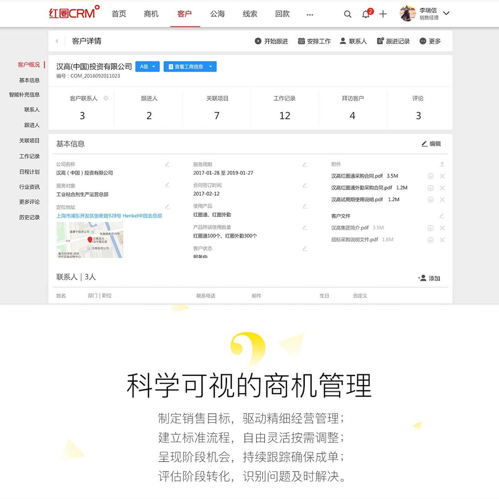 客户管理更聚焦,全景呈现客户管理过程,掌控客户跟进