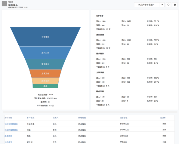 红圈CRM+能够帮助企业建立全面的项目信息,使企业清楚地了解各个项目的进展情况,并通过对销售漏斗的管理,帮助企业清晰地掌握项目在不同销售阶段的转化情况等数据,这样企业能够及时发现销售过程中的障碍和瓶颈,从而优化最有效的转化路径,提升销售成单率。