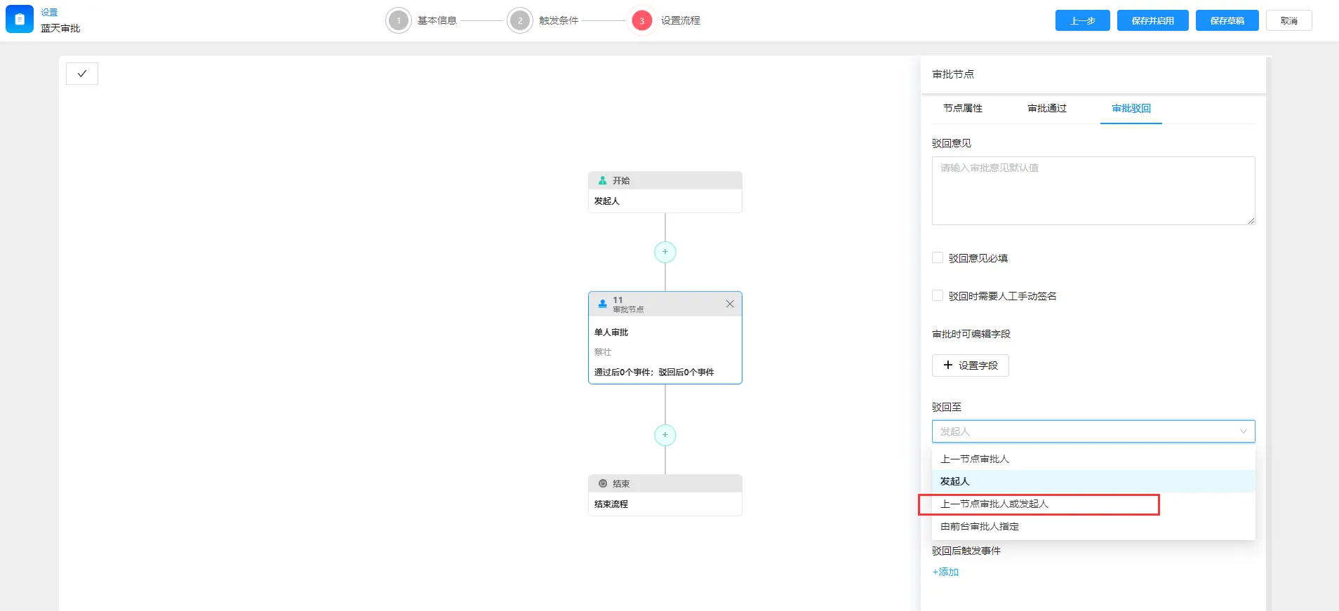 驳回可选驳回至上一节点或发起节点,前台人员操作时可在上一节点和发起节点中选择