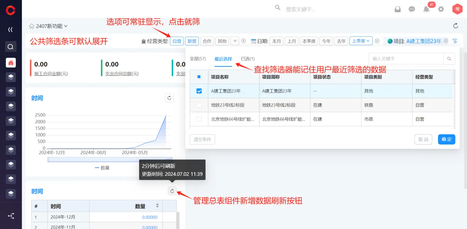 1、管理总表组件可强制刷新数据,并查看数据更新时间
