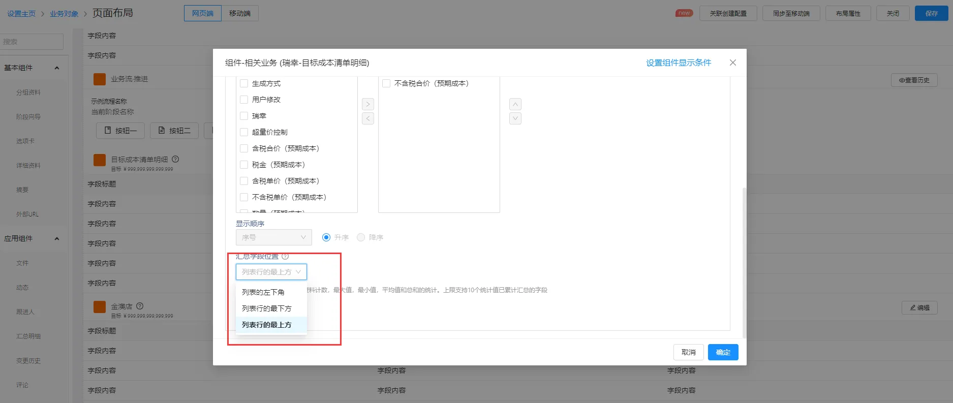 详情页树形子对象的汇总字段可以选择放在列表行的最上方或最下方