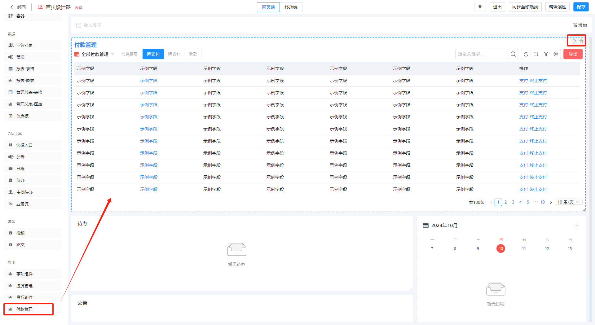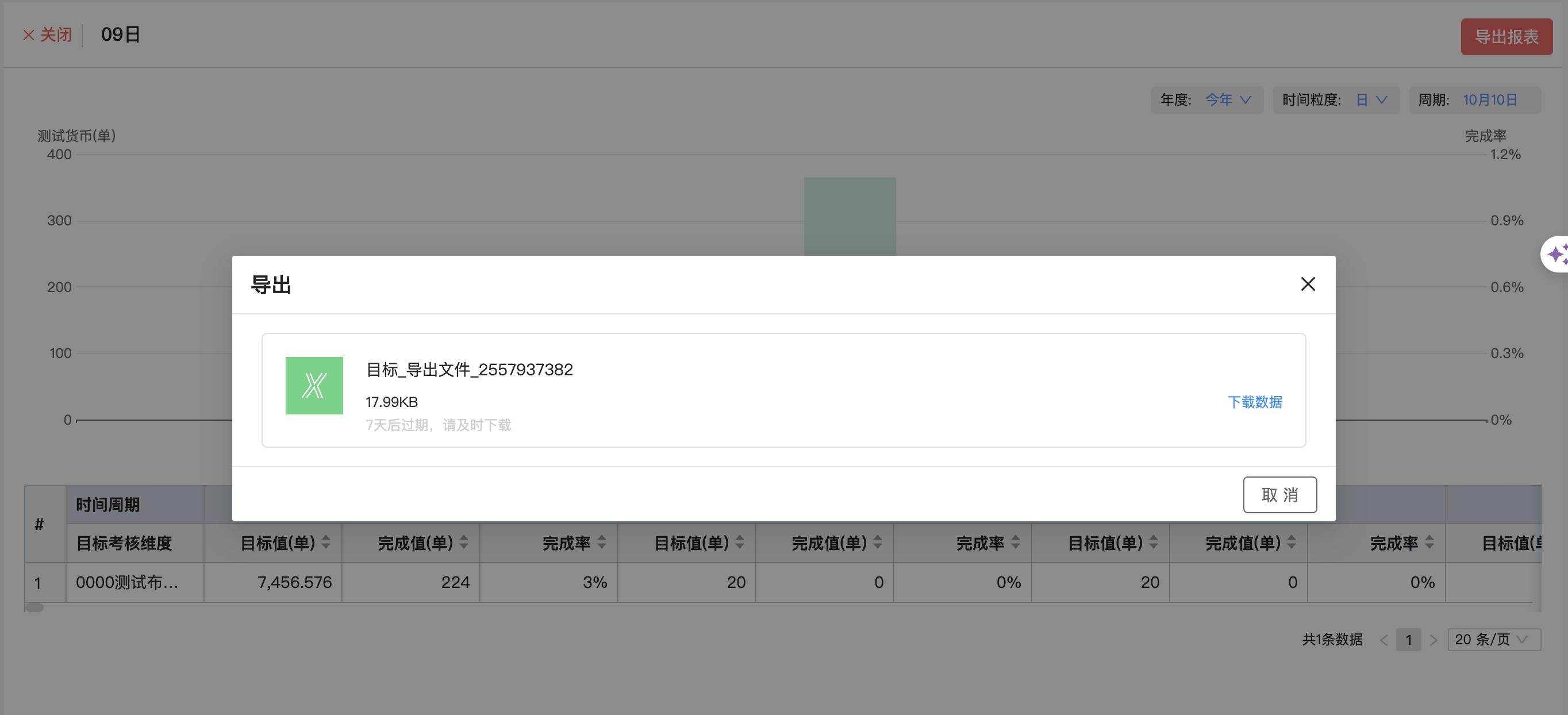 ● 目标完成统计组件支持导出