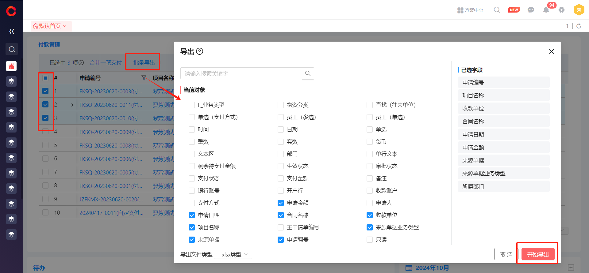 ● 付款管理可以批量导出选定条目