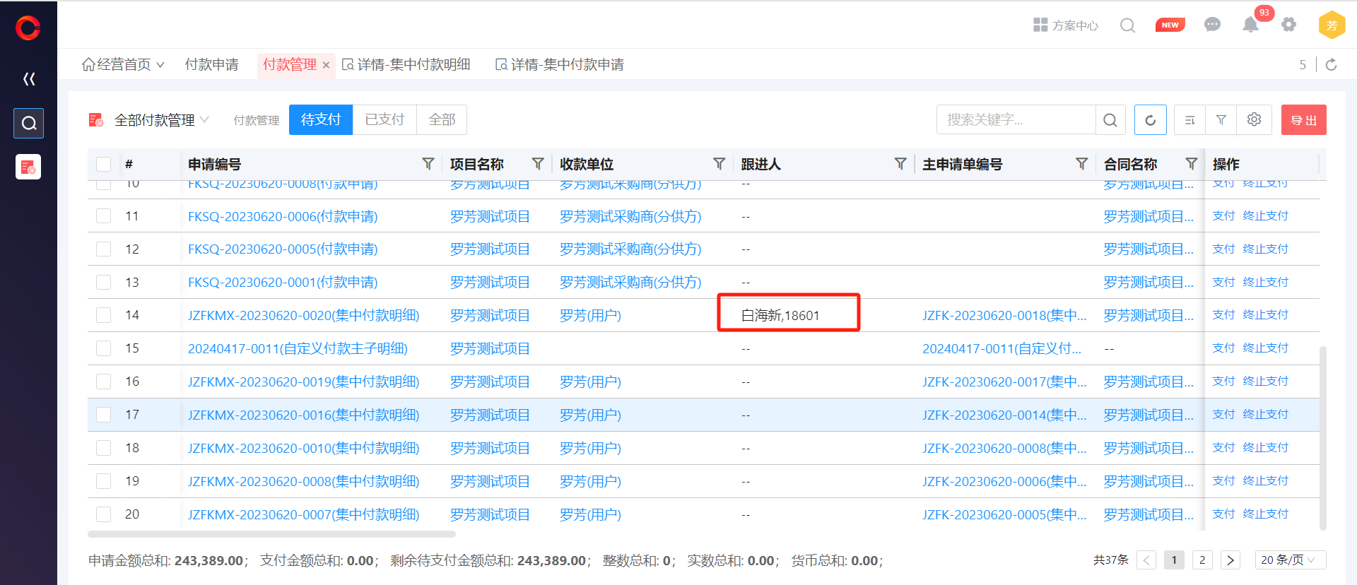 ● 付款管理支持跟进人权限