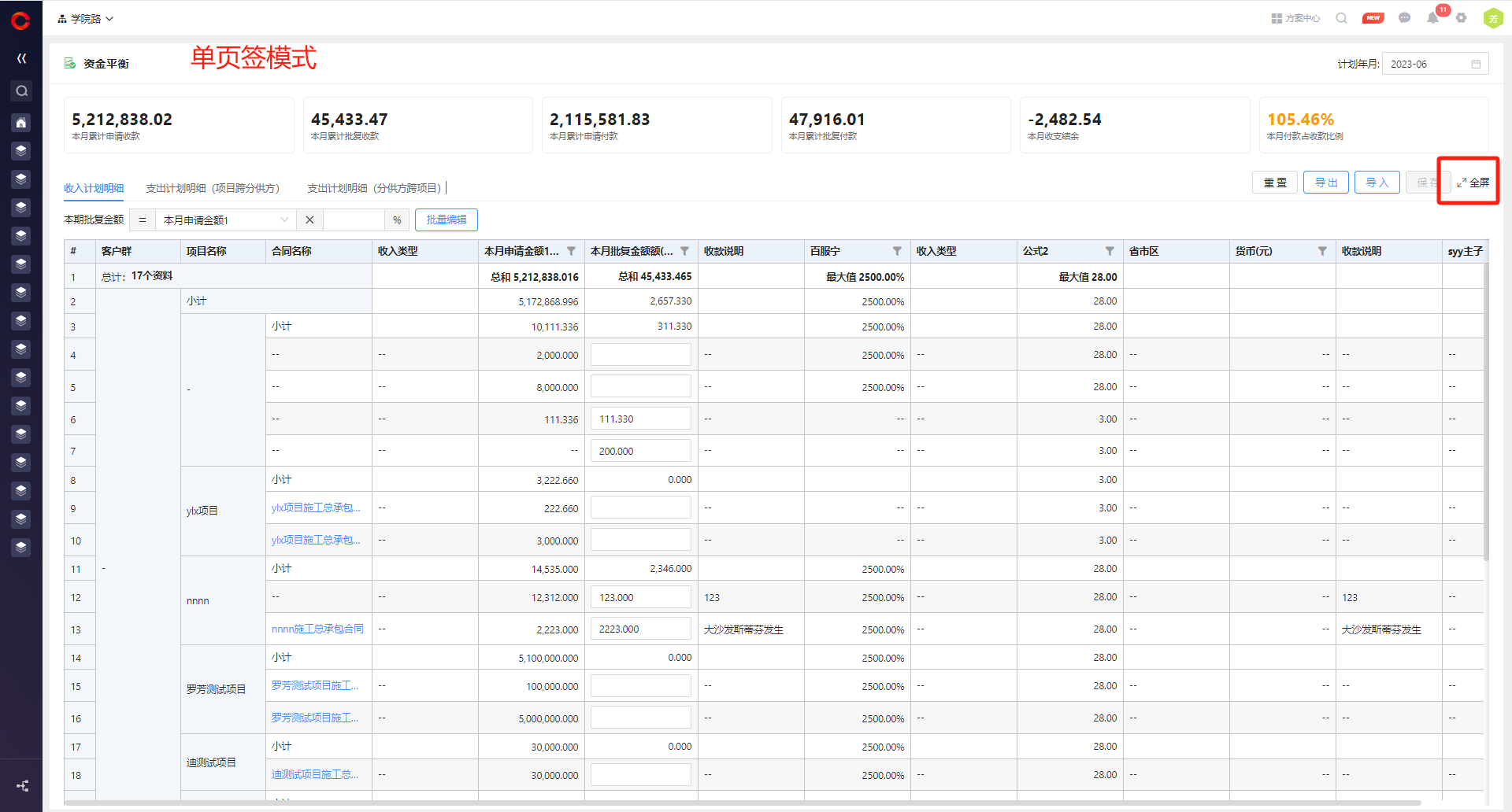 ● 资金平衡支持全屏显示