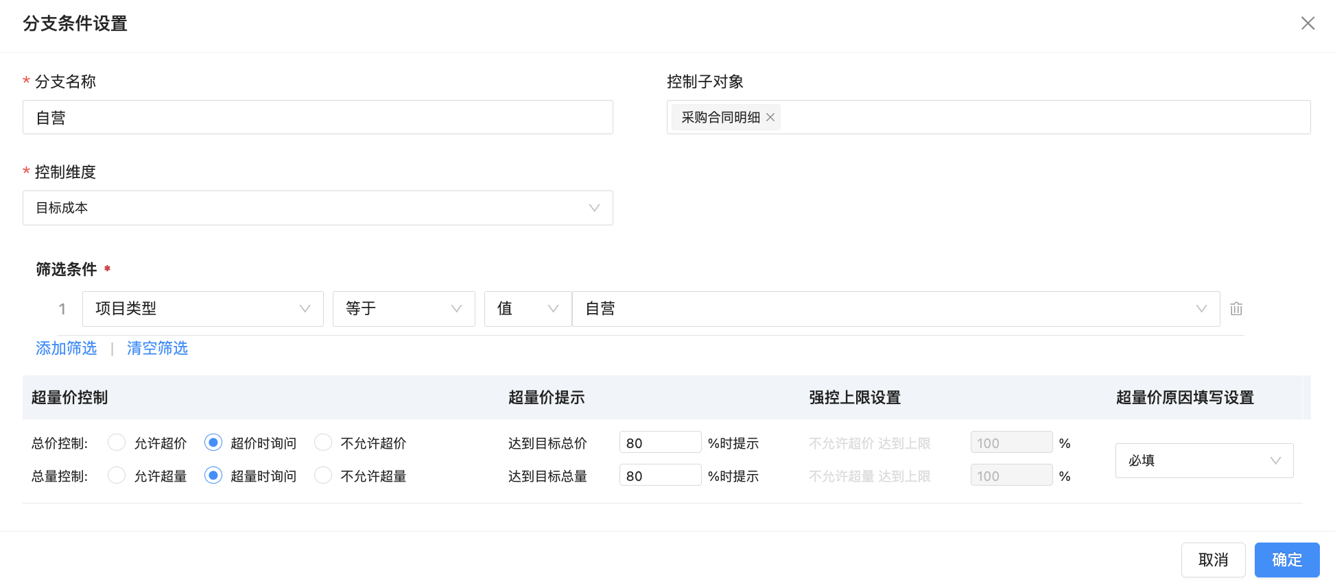 ● 量价参数控制:支持基于不同维度的对象+业务类型进行分支条件设置