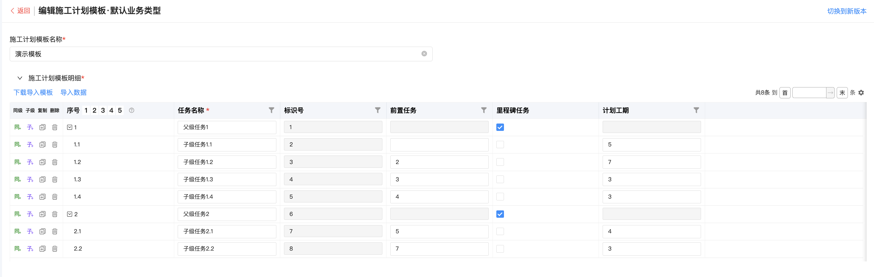 ● 施工计划&配套计划支持新增计划模板