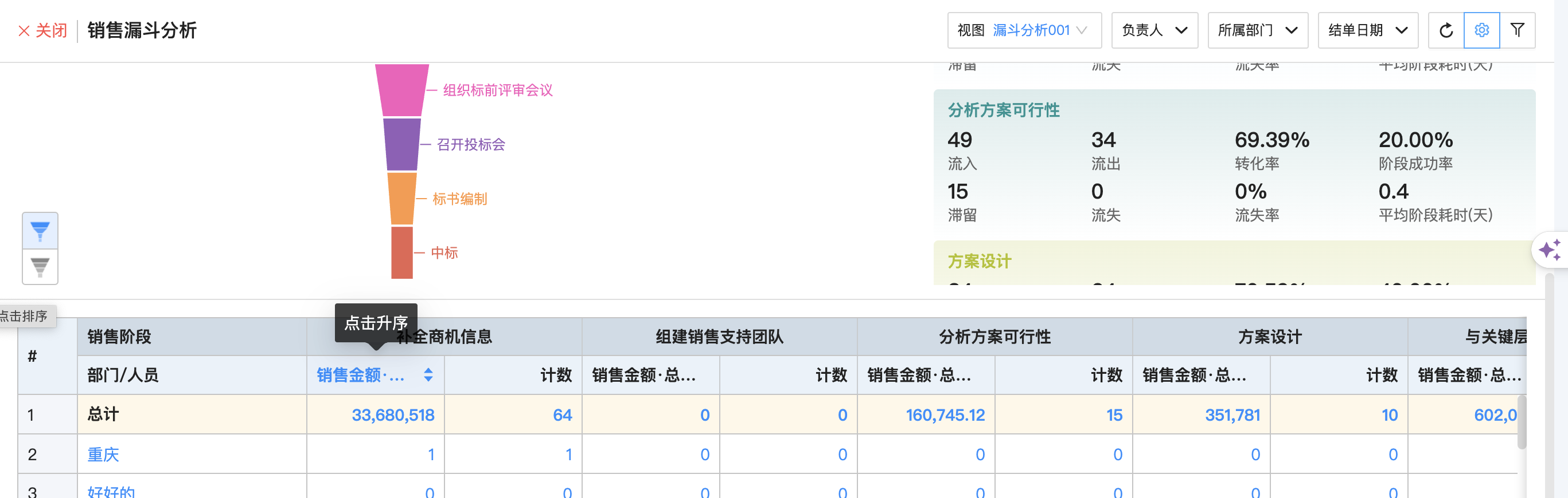 ● 销售漏斗列表支持排序