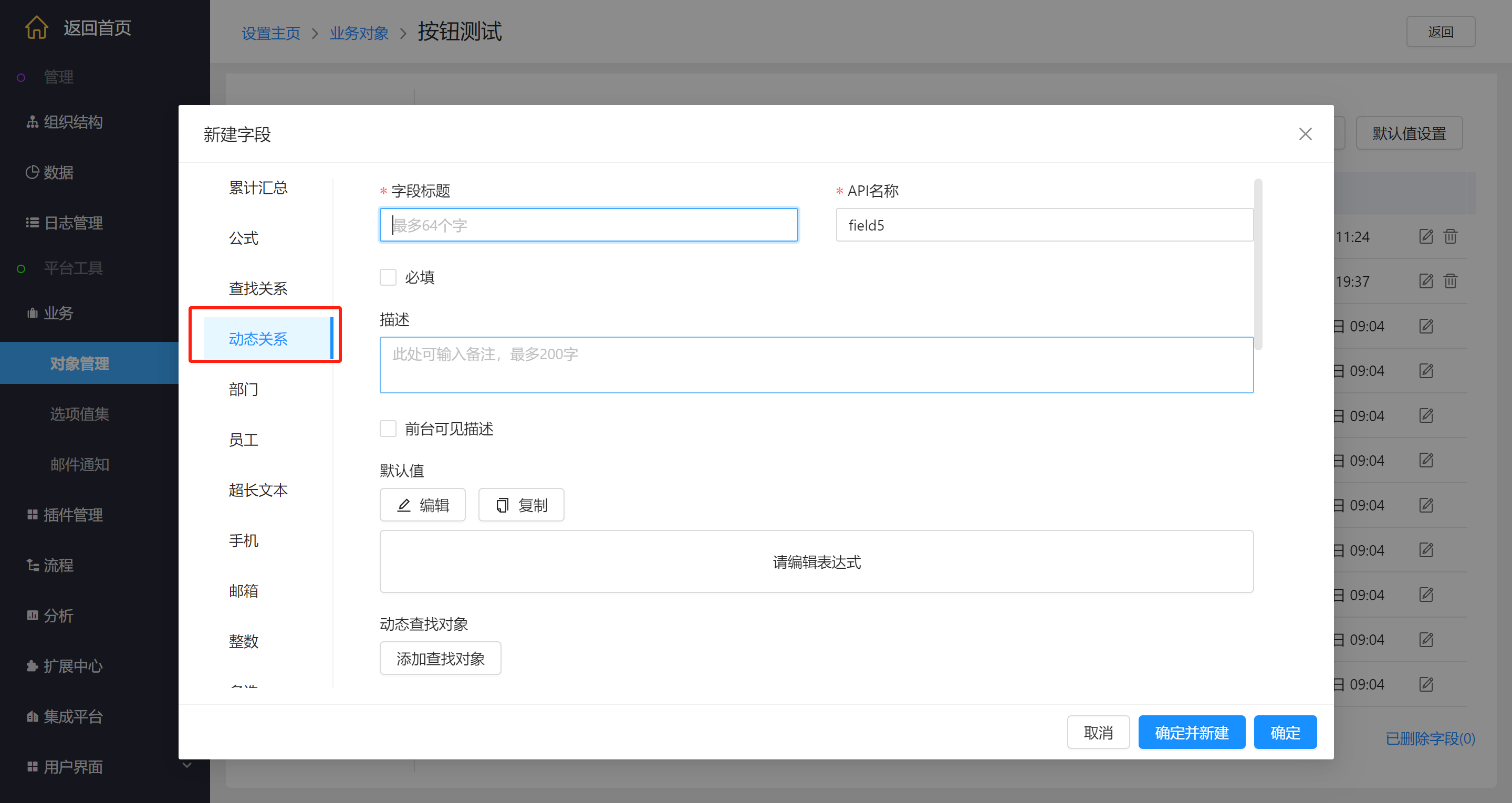 ● 增加自定义动态关系字段