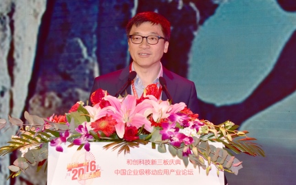 2016中国企业级移动应用产业论坛暨和创科技新三板挂牌庆典在北京国家会议中心隆重举行。复星集团副董事长兼CEO梁信军、新华都商学院理事长何志毅、东方富海集团董事长陈玮、阿里钉钉合伙人孔明、和创科技CEO刘学臣等知名企业领袖、投资机构代表和著名学者出席论坛。