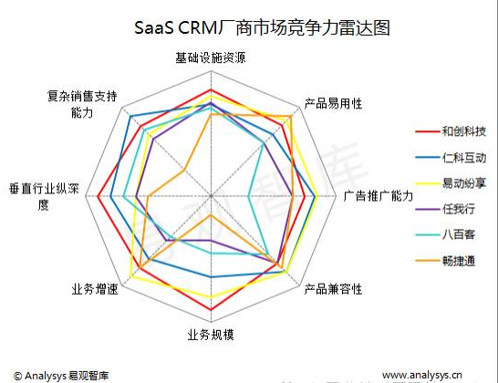 SaaS CRM厂商市场竞争力雷达图