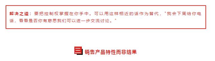 难以置信的是,一些销售(通常是那些市场范的)相信客户之所以购买产品是因为产品有不错的特性。所以他们会快速罗列出一堆产品特性,希望至少有一个可以引起客户的兴趣。