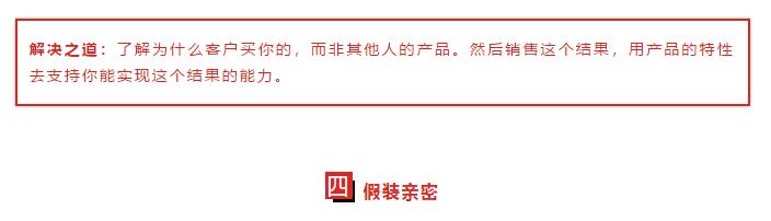 无论是是否喜欢,那一刻,你在客户心中的位置是"一个人正在向我销售东西",你正在进行一场激烈的战斗来赢得信任。在这样的环境下,你做的最错的事情是通过一虚情假意的行为来套词。