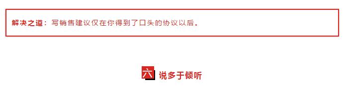 虽然建议偶尔会给销售带来机会,大多数情况下,需要流程的建议最好在确定了问题,同时也确定了解决方案的时候在进行。因为写建议需要花时间和辛苦,除非你已经在销售过程中,否则这是一个坏的投资。