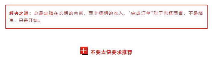 在你完成这个订单之后,真正的工作才开始,因为你开始建立某种关系,以致于你可以产生后续业务,以及推荐销售,而这两者比赢得新业务更容易,也更有利润。