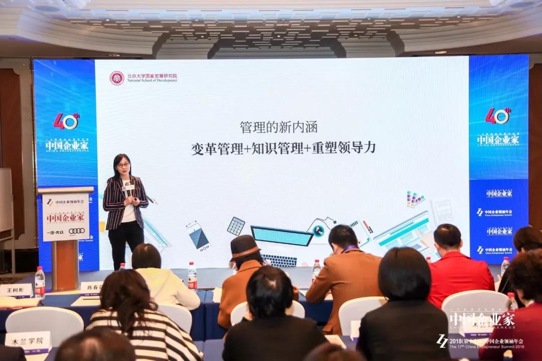 在这场名为「快速成长期的管理变革」的论坛上,她告诫企业家们,今天的组织管理正变得更加复杂、价值更加多元、更加网络化,管理者像过去一样仅仅做好计划、组织、领导、控制这些传统的工作是远远不够的,必须还要在此基础上做好变革管理、知识管理跟重塑领导力这三件事情,这样才能成功应对这些快速的变化。