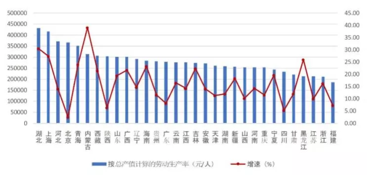 图6 2021年上半年各地区建筑业劳动生产率及其增长情况