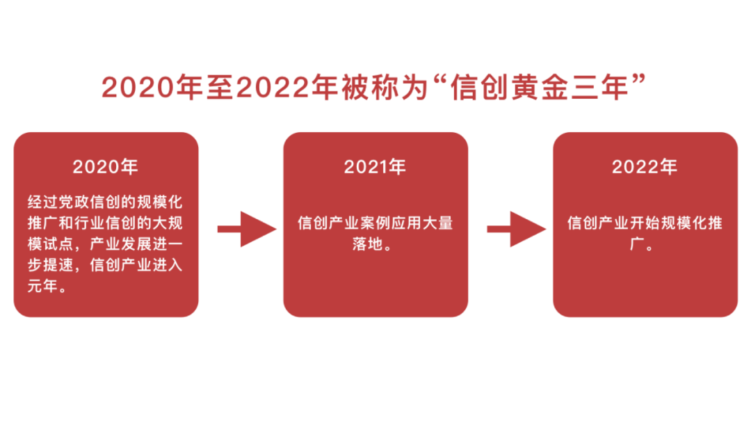 信创产硬件的自主创新性。2020年我国信创产业开启全面推广和大规模试点,到2022年,在政策推动下,各地信创项目开始大面积铺开,从政策驱动走向政策+市场需求双轮驱动。
